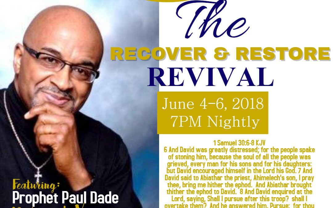 RECOVER AND RESTORE REVIVAL 2018 – Made with PosterMyWall by Gethsemane Baptist Association Secretary | May 30, 2018
