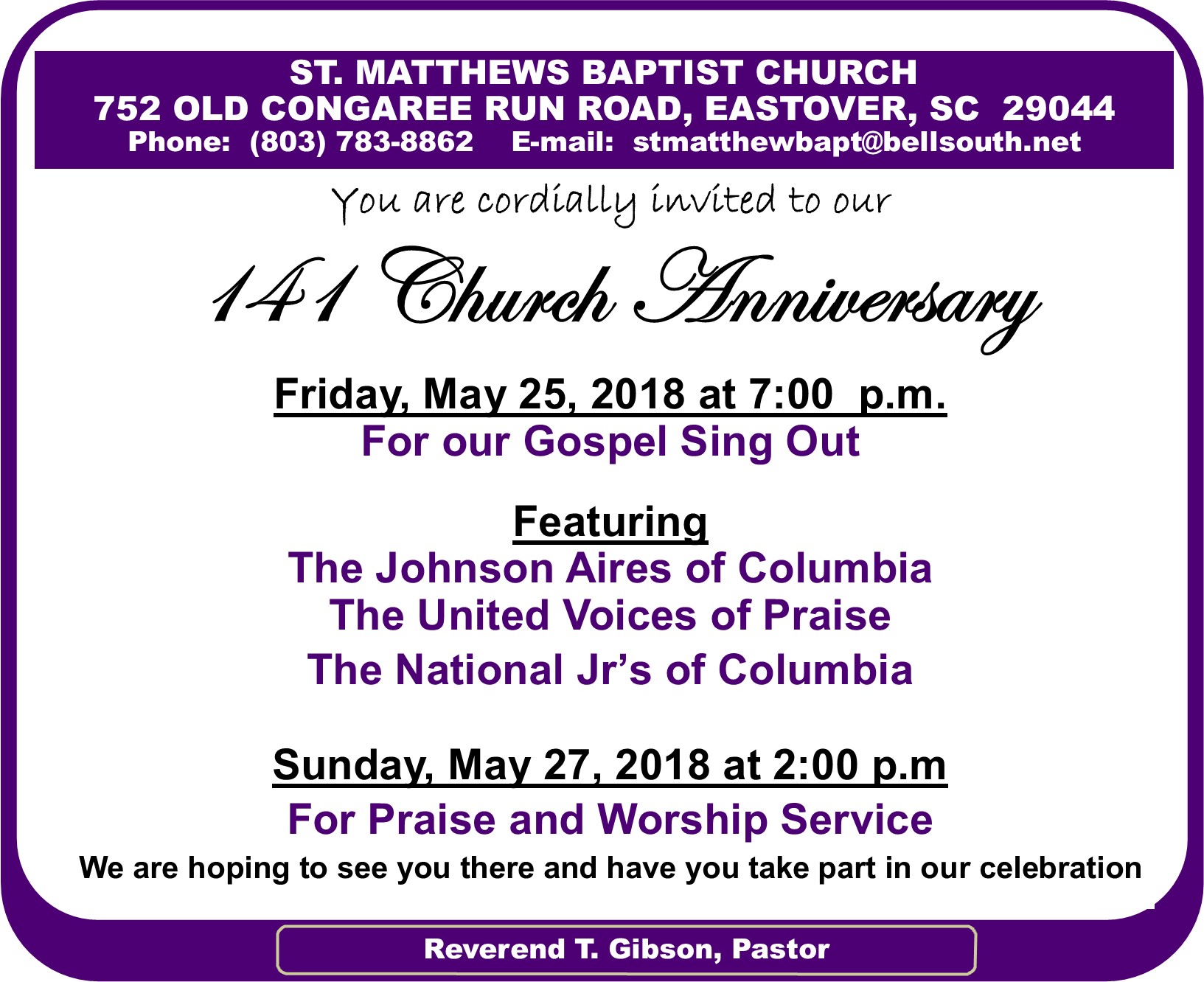 141 Church Anniversary by Gethsemane Baptist Association Secretary | May 24, 2018 141 Church Anniversary397 DownloadsDownload Now!