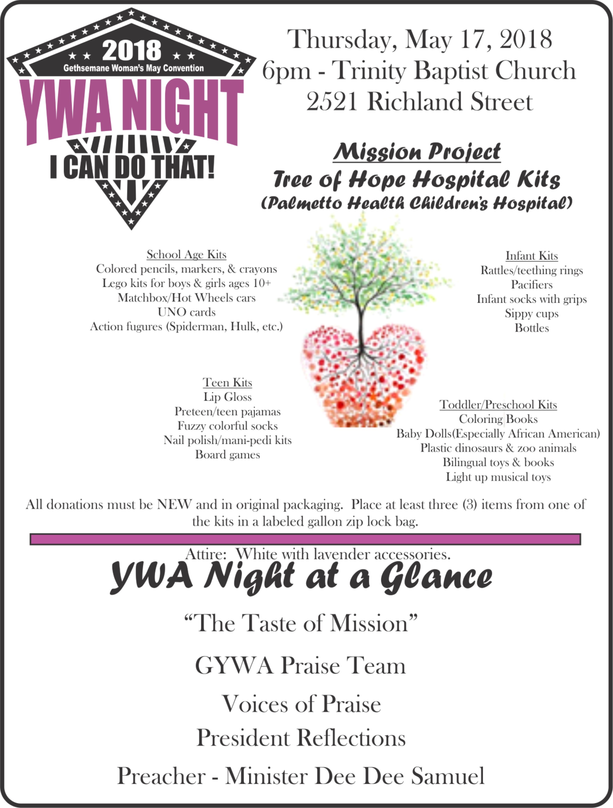 YWA NIGHT – Gethsemane Woman’s Day Convention by Gethsemane Baptist Association Secretary | May 3, 2018 YWA NIGHT – Gethsemane Woman’s Day Convention399 Downloads[Download not found] Download Now!